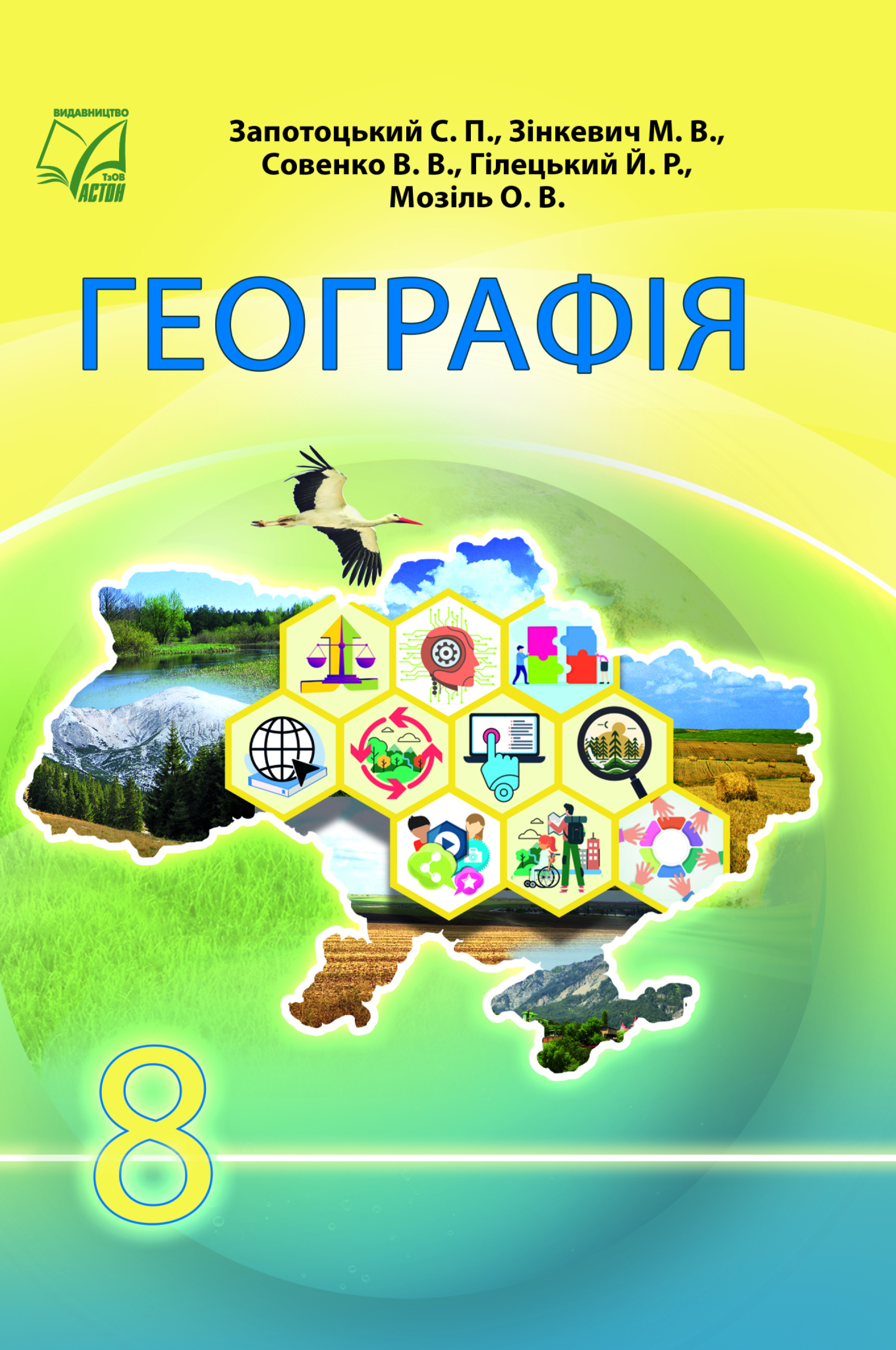 «Географія» підручник для 8 класу закладів загальної середньої освіти (авт. Запотоцький С. П., Зінкевич М. В., Совенко В. В., Гілецький Й. Р., Мозіль О. В.)