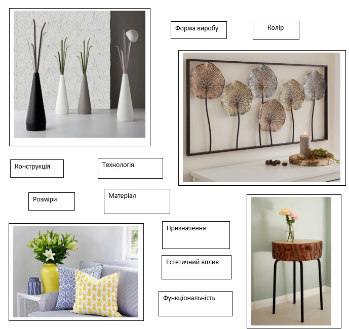 Надай характеристику виробам інтер’єру.