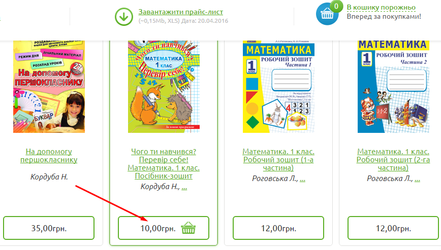 - Оберіть книжку, яка Вас цікавить, та натисніть кнопку “КУПИТИ” і вона потрапить до Вашого кошика. (Ви можете повернутись до каталогу і додати до кошика інші видання: натисніть "Повернутись до каталогу").